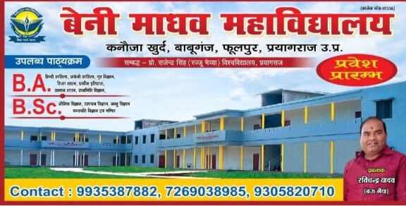 “बेनी माधव महाविद्यालय” की ओर से आप सभी का हार्दिक स्वागत है। इस महाविद्यालय की स्थापना का मूल उद्देश्य ग्रामीण एवं शहरी क्षेत्र की बेटियों को उच्च शिक्षा का अवसर प्रदान करना है ताकि वे समाज में आत्मनिर्भर, शिक्षित और संस्कारित नागरिक बन सकें।
